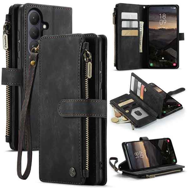 Þetta símaveski fyrir Galaxy S26 farsíma er ekki aðeins hannað til að gera þér mögulegt að nota það sem peningaveski og geyma í því greiðslukort og peningaseðla. Það veitir símanum þínum einnig vörn fyrir rispum og hnjaski. Gripið á símanum verður einnig betra og líkurnar á því að hann „renni“ úr greipum þér eru minni.