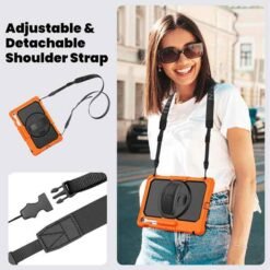 Höggþolið hulstur með axlaról, handól og borðstandi sem er hægt að snúa 360 gráður. Fullt aðgengi að öllum hnöppum og tengjum á tölvunni.