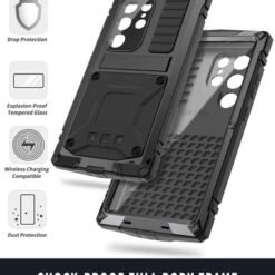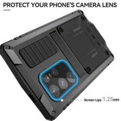 Full Armor högg, ryk og vantsvarið símahulstur með skjávörn, gleri yfir myndavél og innbyggðum borðstandi. Samlokuhulstur(hulstrið er lokað) og fest saman með skrúfum. Skrúfjárn fylgir með. Sérstyrkt horn, skjávörn og hækkaðar brúnir við myndavélalinsu. Styður MagSafe þráðlausa hleðslu. Hulstrið ver símann fyrir höggum, rispum, hnjaski og sliti.