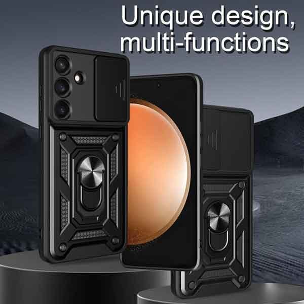 Hulstrið er framleitt úr TPU og PC plastefnum sem verja símann fyrir höggum og hnjaski. Hulstrið kemur einnig með innbyggðri hlíf sem hægt er að renna yfir myndavélalinsuna til að verja hana fyrir hnjaski.