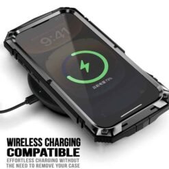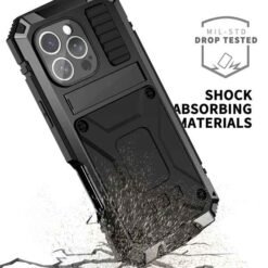 Full Armor högg, ryk og vantsvarið símahulstur með skjávörn og innbyggðum borðstandi. Samlokuhulstur(hulstrið er lokað) og fest saman með skrúfum. Skrúfjárn fylgir með. Sérstyrkt horn, skjávörn og hækkaðar brúnir við myndavélalinsu. Styður MagSafe þráðlausa hleðslu. Hulstrið ver símann fyrir höggum, rispum, hnjaski og sliti.