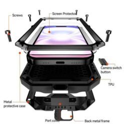 Full Armor högg, ryk og vantsvarið símahulstur með skjávörn og innbyggðum borðstandi. Samlokuhulstur(hulstrið er lokað) og fest saman með skrúfum. Skrúfjárn fylgir með. Sérstyrkt horn, skjávörn og hækkaðar brúnir við myndavélalinsu. Styður MagSafe þráðlausa hleðslu. Hulstrið ver símann fyrir höggum, rispum, hnjaski og sliti.