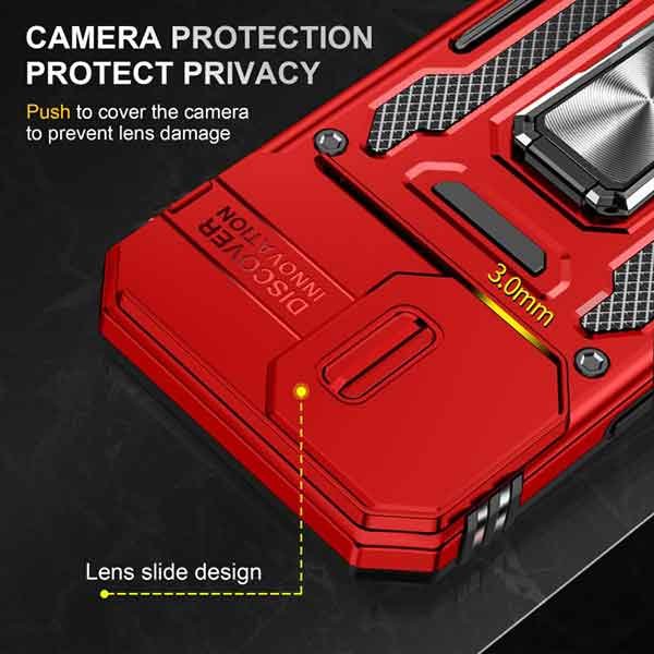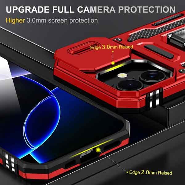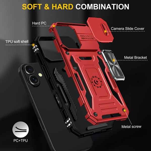 Hulstrið er framleitt úr TPU og PC plastefnum sem verja símann fyrir höggum og hnjaski. Hulstrið kemur einnig með innbyggðri hlíf sem hægt er að renna yfir myndavélalinsuna til að verja hana fyrir hnjaski.