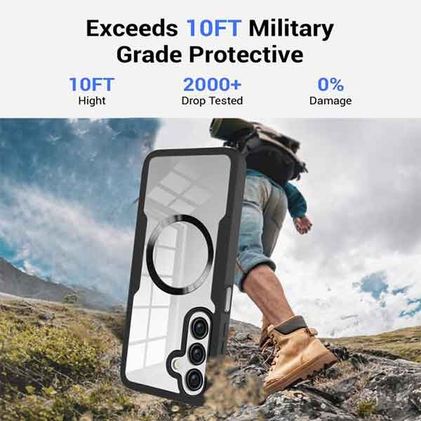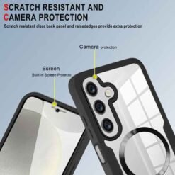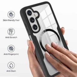 Þetta símahulstur MagSafe fyrir Galaxy A36/A56 farsíma veitir símanum þínum vörn fyrir höggum, rispum og hnjaski. Gripið á símanum verður einnig betra og líkurnar á því að hann „renni“ úr greipum þér eru minni. Þú þarft ekki að taka símann úr hulstrinu til að hlaða hann þar sem þú hefur fullt aðgengi að öllum hnöppum og tengjum á símanum. Hulstrið kemur með innbyggðum segulhring og styður þráðlausa hleðslu. Símahulstur eru ýmist framleidd úr plastefnum, málmefnum eða hertu gleri og veita þau mismundandi vörn í samræmi við það. Ekkert símahulstur veitir símanum fullkomna vörn fyrir höggum en þau hjálpa til við að lágmarka tjón. Þetta símahulstur er framleitt úr silicone plastefni.