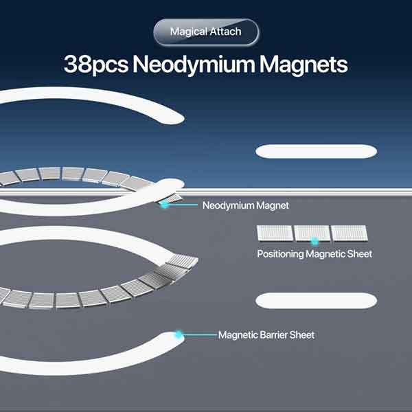 Hulstrið er með innbyggðum segulhring sem passar við símann þinn. Þannig getur þú á auðveldan hátt hlaðið símann þinn þegar hann er í hulstrinu.