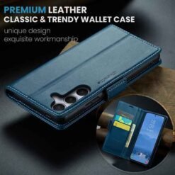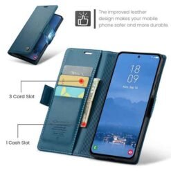 Þetta símaveski fyrir Galaxy S25 FE farsíma er ekki aðeins hannað til að gera þér mögulegt að nota það sem peningaveski og geyma í því greiðslukort og peningaseðla. Það veitir símanum þínum einnig vörn fyrir rispum og hnjaski. Gripið á símanum verður einnig betra og líkurnar á því að hann „renni“ úr greipum þér eru minni.