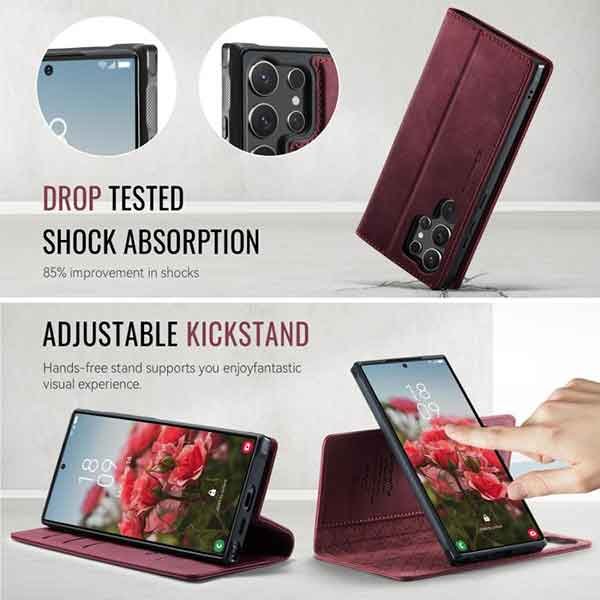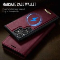 Þetta símaveski fyrir Galaxy S25 ultra farsíma er ekki aðeins hannað til að gera þér mögulegt að nota það sem peningaveski og geyma í því greiðslukort og peningaseðla. Það veitir símanum þínum einnig vörn fyrir rispum og hnjaski. Gripið á símanum verður einnig betra og líkurnar á því að hann „renni“ úr greipum þér eru minni.