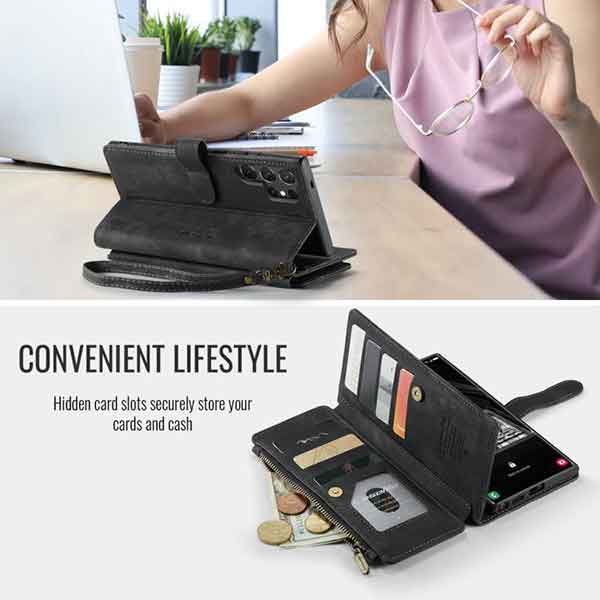 Vandað símaveski framleitt af CaseMe úr PU leðurefni og PC plastefni. Hægt er að nota símaveskið sem stand fyrir símann og láta hann standa lárétt á sléttum fleti. Fullt aðgengi að öllum hnöppum og tengjum á símanum.