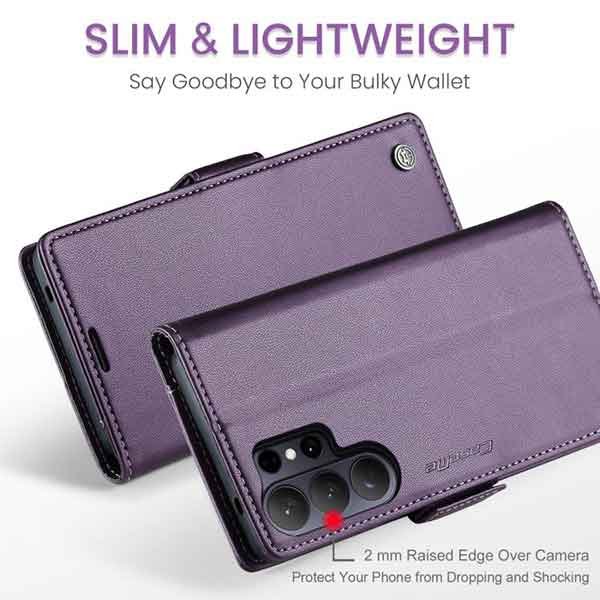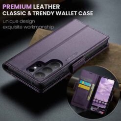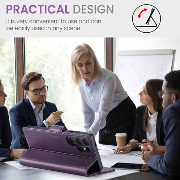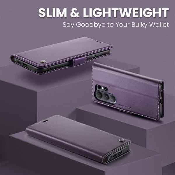 Þetta símaveski fyrir Galaxy S26 ultra farsíma er ekki aðeins hannað til að gera þér mögulegt að nota það sem peningaveski og geyma í því greiðslukort og peningaseðla. Það veitir símanum þínum einnig vörn fyrir rispum og hnjaski. Gripið á símanum verður einnig betra og líkurnar á því að hann „renni“ úr greipum þér eru minni.