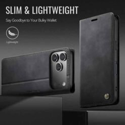 með hólfum fyrir kreditkort og peningaseðla. Vandað símaveski framleitt af CaseMe úr hágæða PU leðurefni og PC plastefni. Hægt er að nota símaveskið sem stand fyrir símann og láta hann standa lárétt á sléttum fleti. Fullt aðgengi að öllum hnöppum og tengjum á símanum. Innbyggð RFID þjófavörn.