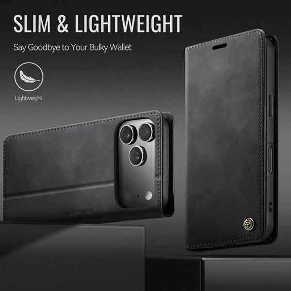 Þetta símaveski fyrir iPhone 17 pro farsíma er ekki aðeins hannað til að gera þér mögulegt að nota það sem peningaveski og geyma í því greiðslukort og peningaseðla. Það veitir símanum þínum einnig vörn fyrir rispum og hnjaski. Gripið á símanum verður einnig betra og líkurnar á því að hann „renni“ úr greipum þér eru minni.