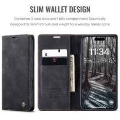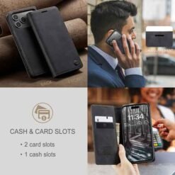 Þetta símaveski fyrir iPhone 17 pro max farsíma er ekki aðeins hannað til að gera þér mögulegt að nota það sem peningaveski og geyma í því greiðslukort og peningaseðla. Það veitir símanum þínum einnig vörn fyrir rispum og hnjaski. Gripið á símanum verður einnig betra og líkurnar á því að hann „renni“ úr greipum þér eru minni.