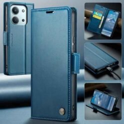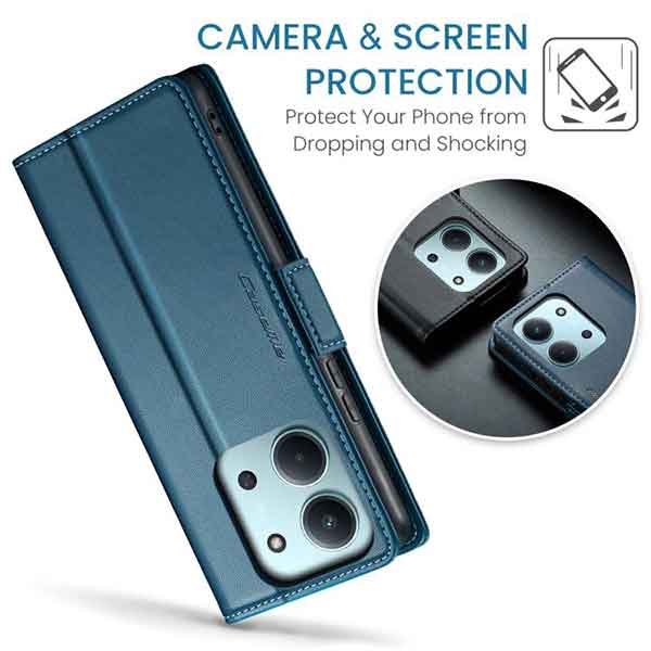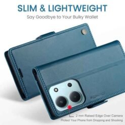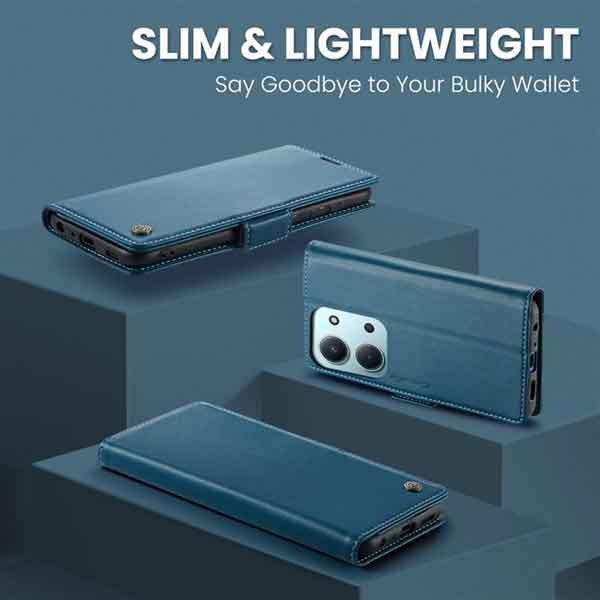 Þetta símaveski fyrir Redmi 15C farsíma er ekki aðeins hannað til að gera þér mögulegt að nota það sem peningaveski og geyma í því greiðslukort og peningaseðla. Það veitir símanum þínum einnig vörn fyrir rispum og hnjaski. Gripið á símanum verður einnig betra og líkurnar á því að hann „renni“ úr greipum þér eru minni.