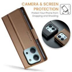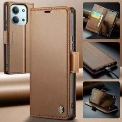 Þetta símaveski fyrir Redmi 15C farsíma er ekki aðeins hannað til að gera þér mögulegt að nota það sem peningaveski og geyma í því greiðslukort og peningaseðla. Það veitir símanum þínum einnig vörn fyrir rispum og hnjaski. Gripið á símanum verður einnig betra og líkurnar á því að hann „renni“ úr greipum þér eru minni.