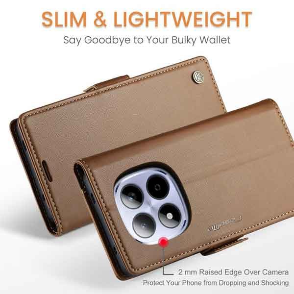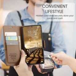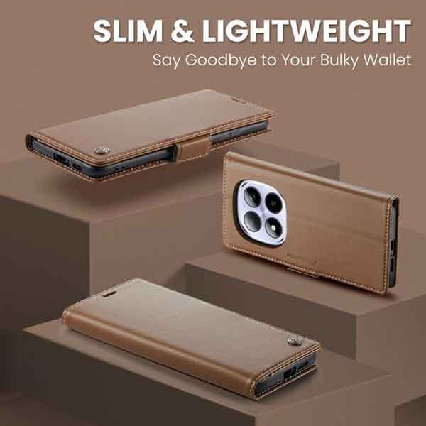 Þetta símaveski fyrir Redmi note 15 Pro farsíma er ekki aðeins hannað til að gera þér mögulegt að nota það sem peningaveski og geyma í því greiðslukort og peningaseðla. Það veitir símanum þínum einnig vörn fyrir rispum og hnjaski. Gripið á símanum verður einnig betra og líkurnar á því að hann „renni“ úr greipum þér eru minni.