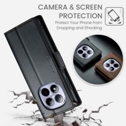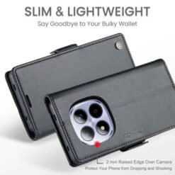 Þetta símaveski fyrir Redmi note 15 Pro farsíma er ekki aðeins hannað til að gera þér mögulegt að nota það sem peningaveski og geyma í því greiðslukort og peningaseðla. Það veitir símanum þínum einnig vörn fyrir rispum og hnjaski. Gripið á símanum verður einnig betra og líkurnar á því að hann „renni“ úr greipum þér eru minni.