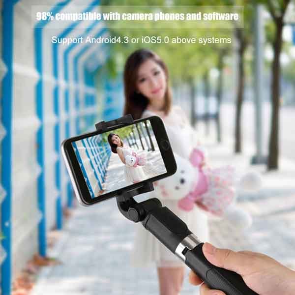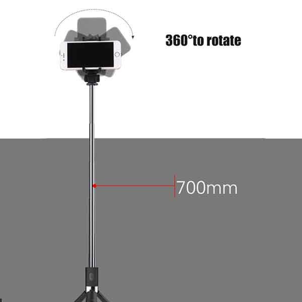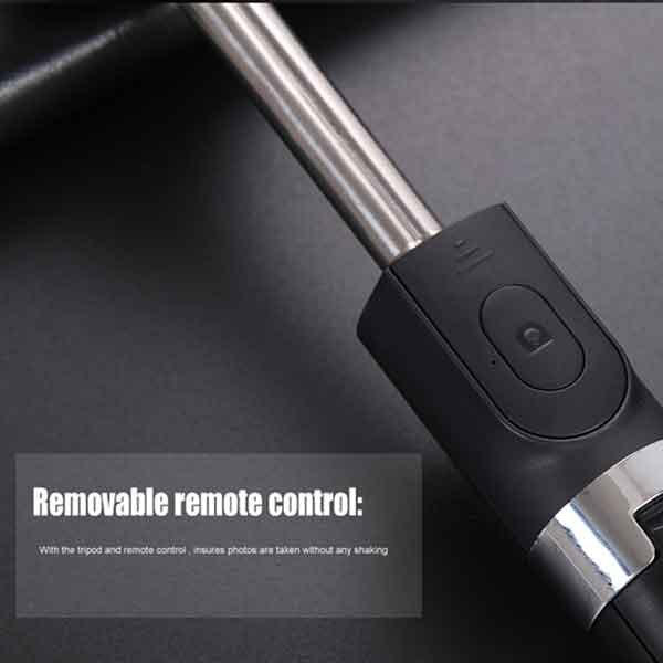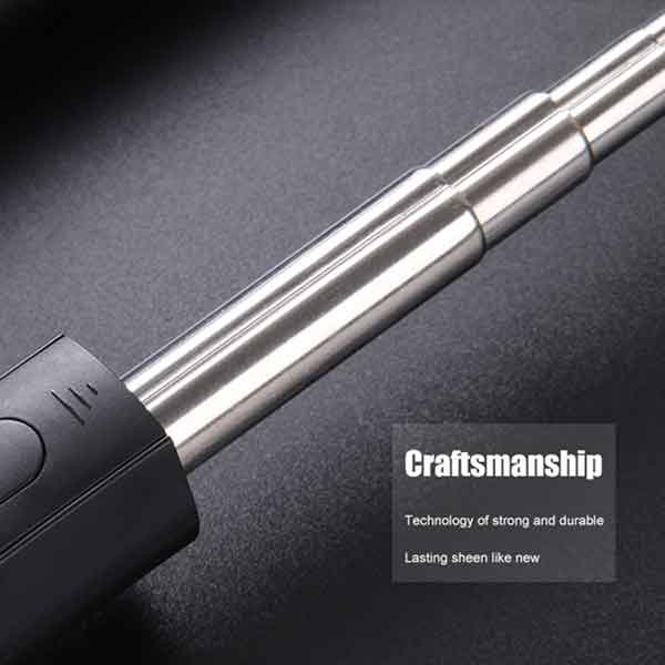 . Flott þráðlaus sjálfustöng sem einnig er hægt að nota sem þrífót fyrir símann. Bluetooth þráðlasu með fjarstýringu.